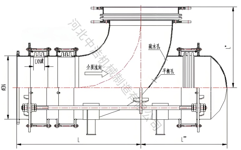 a、吸收位移變形:當(dāng)管道收受到溫度變化 、介質(zhì)壓力波動等外部因素影響時,會產(chǎn)生周橫向位移變化。曲管壓力平衡補償器通過內(nèi)部波紋管結(jié)構(gòu)變動,自由伸縮、吸收位移,從而減少管道系統(tǒng)位移影響。
