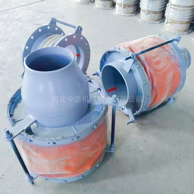 異徑接管非金屬補(bǔ)償器,中浩機(jī)械擁有完善設(shè)計(jì)團(tuán)隊(duì)可根據(jù)實(shí)際工況定制不同產(chǎn)品,其結(jié)構(gòu)組成多層復(fù)合蒙皮,同時(shí)滿足密封、耐溫和柔性補(bǔ)償?shù)榷喾N功能蒙皮組成。特殊高溫工況還可以增加硅酸鋁棉隔熱層和陶瓷纖維等。端管采用焊接金屬接管或錐管大小頭等過渡管,接管段按管道厚壁、材質(zhì)等加工。可直接對(duì)焊、套接,可內(nèi)置導(dǎo)流板增加限位拉桿,防止戒指直接沖擊蒙皮,避免損壞,提升使用壽命。