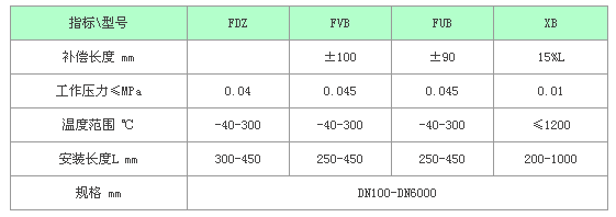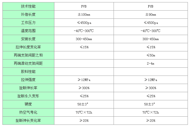 FUB型風(fēng)道橡膠補償器性能參數(shù)表